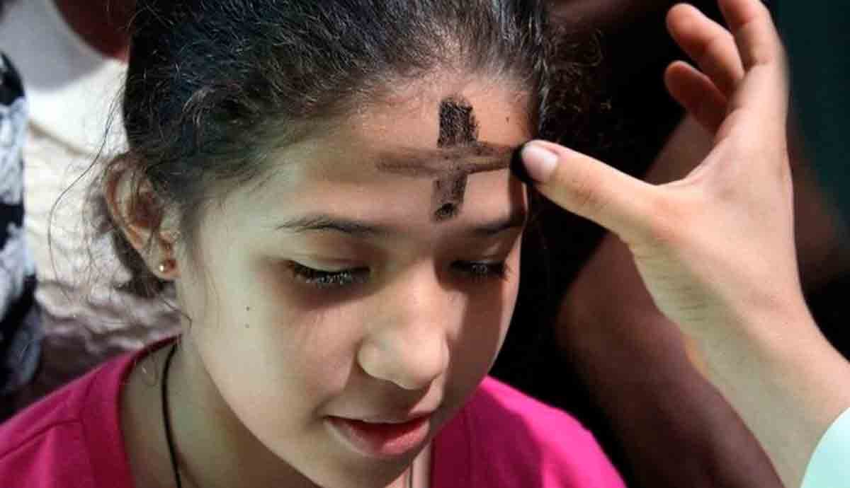 La imposición de la ceniza en la frente de los creyente se realiza al terminar la homilía, mientras el celebrante dice las siguientes palabras bíblicas, “Acuérdate que eres polvo y en polvo te convertirás”.