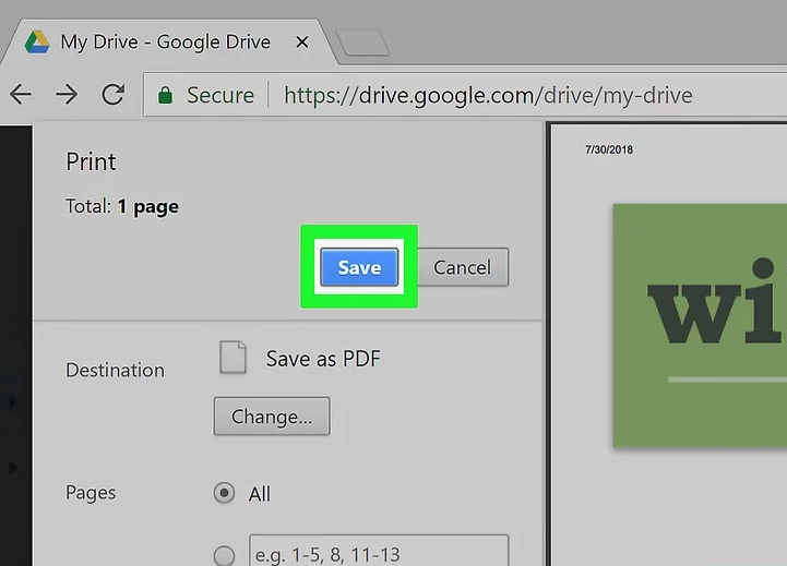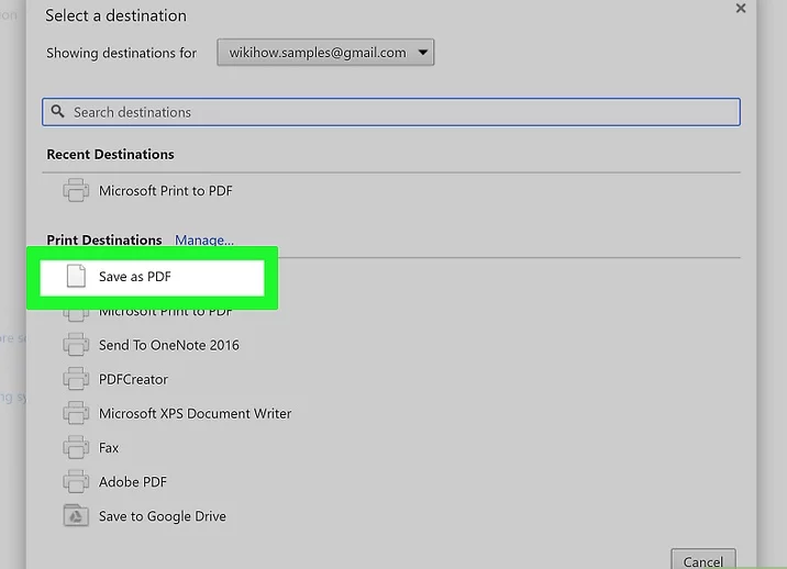 7 Haz clic en Guardar como PDF. Esta opción está debajo del encabezado «Opciones locales» del menú «Seleccionar un destino».