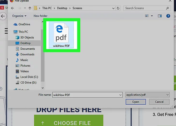 3 Selecciona tu archivo PDF. En la ventana que se abre, ve a la ubicación donde esté guardado tu PDF y luego haz clic en el PDF una vez para seleccionarlo.