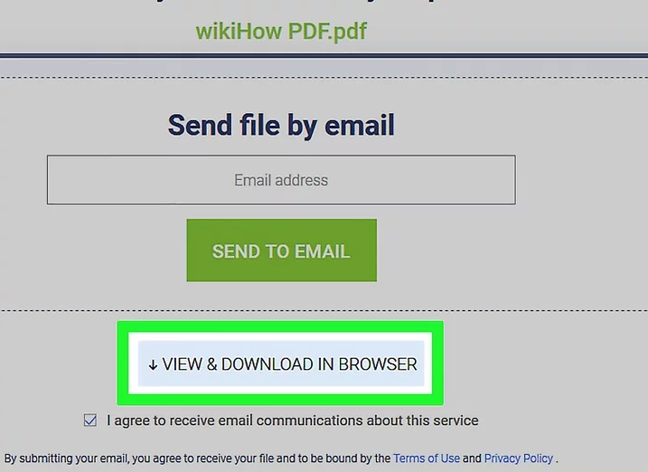 7 Haz clic en VER Y DESCARGAR EN EL NAVEGADOR. Está en el lado derecho de la página. Al hacerlo, el PDF desbloqueado se descargará a tu computadora, desde donde podrás abrirlo sin tener que ingresar una contraseña.
