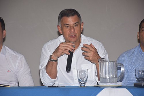 El director general del Invima , Julio César Aldana Bula, en el lanzamiento del proyecto piloto en esta ciudad para la radicación directa de trámites de alimentos sin necesidad de desplazarse hasta Bogotá.
