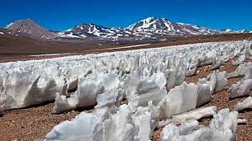 Encontrar hielo en medio de un desierto,  es sorprendente y raro , pero enormes laminas en forma de Dagas de hielo alineadas vertical en medio de un desierto, estas formaciones les llaman penitentes, miden hasta 5 metros y se forman en habientes extremadamente secos donde el hielo se evapora.