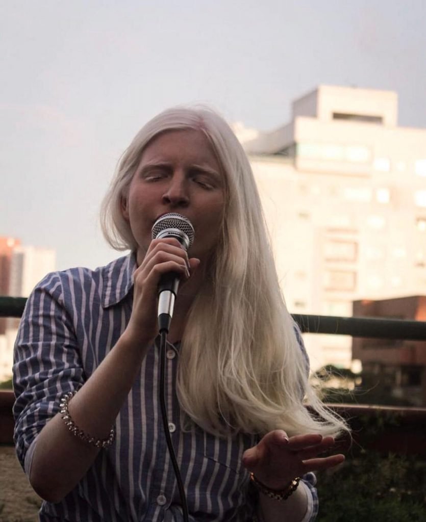Recordemos que el albinismo es causado por mutaciones en diferentes genes, que produce una reducción o ausencia total del pigmento melánico de ojos, piel y pelo. Sin embargo, su condición no ha sido limitante para brillar en la vida artística.