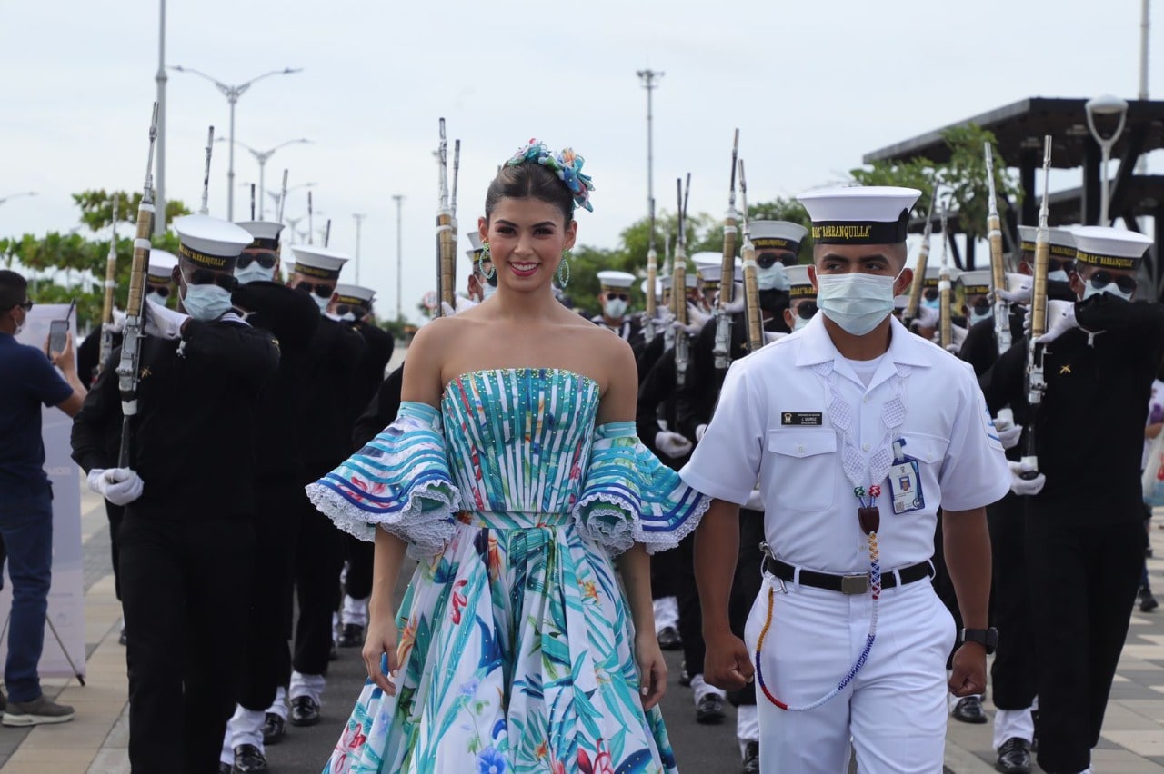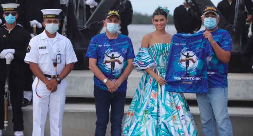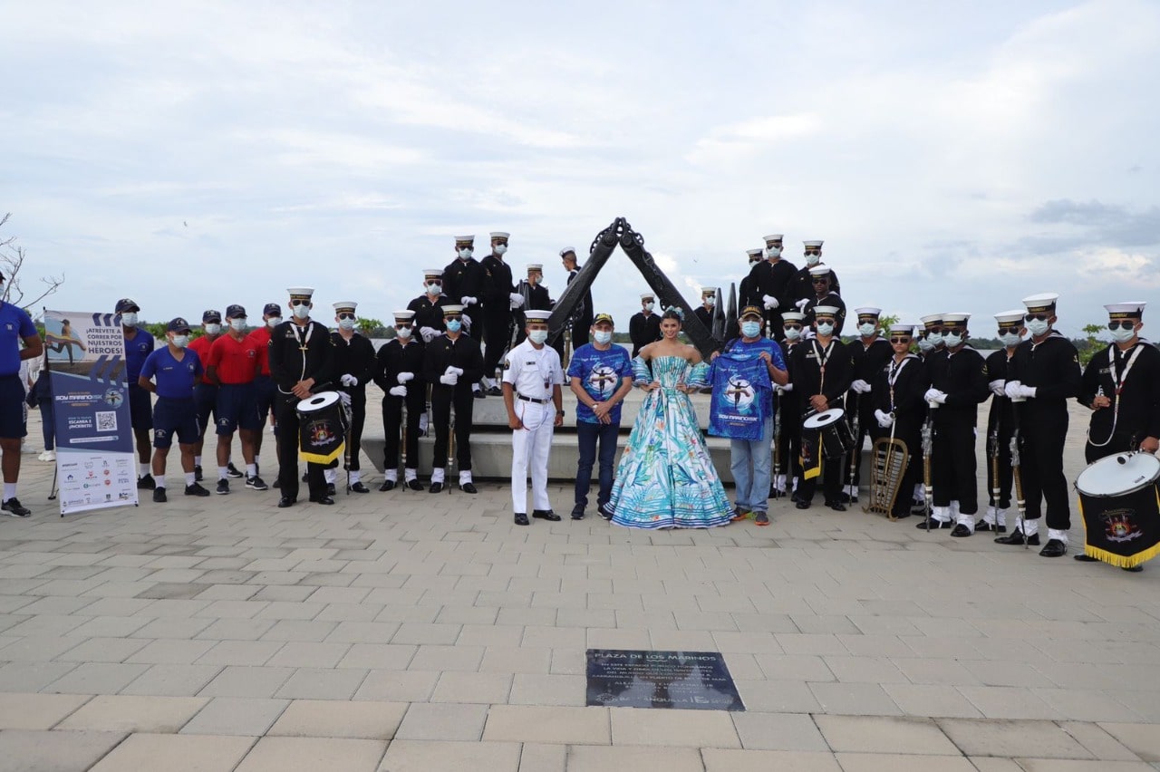 La soberana recorrió el monumento a los marinos en compañía de los grumetes que conforman los manejos especiales y el grupo ‘tricolor’ de la Escuela Naval de Suboficiales ARC Barranquilla e invitó a los asistentes y barranquilleros a participar de este evento deportivo.