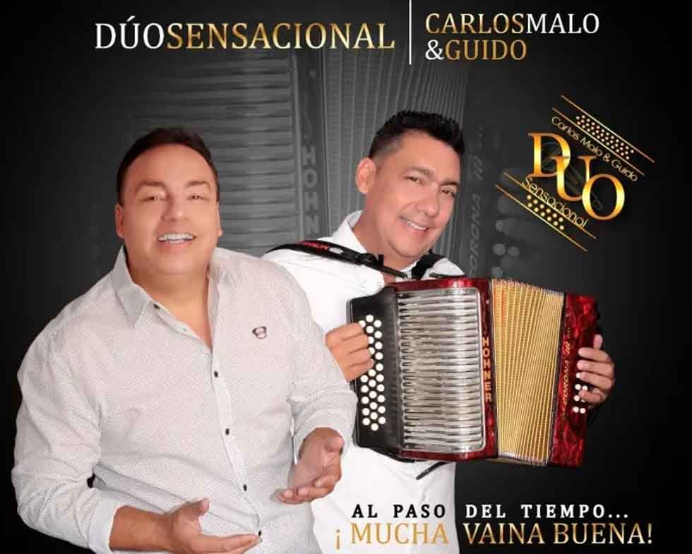 Carlos Malo, poseedor de una bella y potente voz, interpretará las canciones de su repertorio que ya son consideradas clásicas, como ‘A una sirena’ y ‘Confidente peregrino’, de José Alfonso ‘Chiche’ Maestre; ‘A mi manera te quiero’, de Iván Ovalle; ‘A una amiga’, de Carlos Tirado; ‘Qué me hiciste’, de Efrén Calderón; ‘De labios para afuera’, de Álvaro Llorente Flórez; ‘Si tu amor no vuelve’, de Wilfran Castillo, y ‘Lloran las palabras’, de Kaleth Morales.“Al paso del tiempo seguimos ofreciendo mucha vaina buena. El Dúo Sensacional está más firme, más activo y más productivo que nunca”, señala Guido Malo, el diestro acordeonista de la agrupación.Precisamente, la más reciente producción musical del Dúo Sensacional lleva por título ‘Al paso del tiempo… ¡Mucha vaina buena!’, y está compuesta de 18 canciones, de las que se destacan el ‘Mosaico Sensacionalísimo’, que incluye ‘Dos mujeres’, del trirrey vallenato Alfredo Gutiérrez; ‘Las tapas’, la alegre pieza de Ivo Otero que popularizó Lisandro Meza; ‘El bailador’, de Julio Erazo, grabada con los Corraleros de Majagual; ‘El perro negro’, de Daudeth Cantillo, inmortalizada por la Banda 20 de Julio de Repelón, y ‘El pilón guajiro’, joya del folclor colombiano.‘Problema social’, paseo romántico escrito por el fallecido compositor Pedro Pablo Peña -que el Dúo Sensacional había grabado en 2001, es presentado de nuevo, pero con un sonido más fresco, y, eso sí, conservando su originalidad.Las 16 restantes canciones que incluye el CD son inéditas, la mayoría de compositores de amplia trayectoria en el folclor vallenato.
