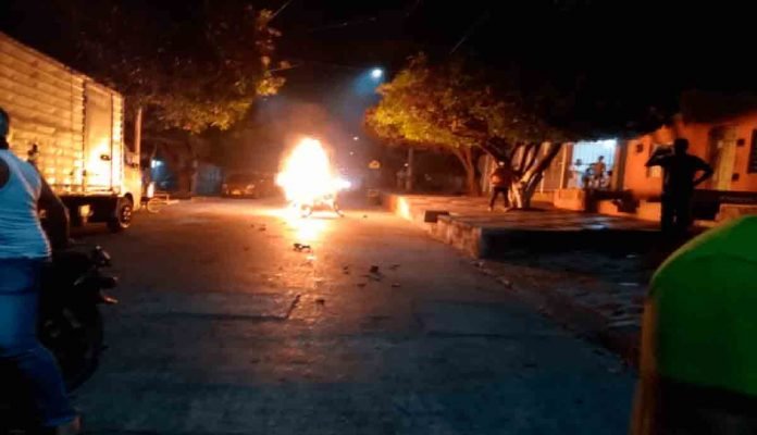 La comunidad incineró la motocicleta de los capturados. El está siendo presentado ante el señor fiscal URI en turno, para su judicialización