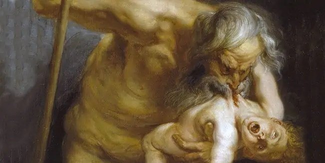 Del mismo modo en el que Gaia entre los hijos que tuvo en su unión con Urano- el Cielo-, también parió a Cronos quien castró a su padre con el fin de impedir que pudieses engendrar nuevos hermanos que le disputaran su herencia y que, en adelante, se comía a sus propios hijos con el fin de evitar que alguno de ellos pudiera convertirse en su competidor, en su reemplazo.