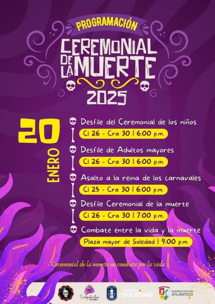 El próximo lunes, 20 de enero, Soledad, Atlántico, se vestirá de tradición y simbolismo con la celebración del Ceremonial de la Muerte 2025, un evento clave de la Ruta de la Tradición del Carnaval del Atlántico que revive una de las expresiones culturales más representativas de la región. La actividad contará con la participación de 2.300 artistas y grupos folclóricos, así como con la presencia de importantes figuras culturales y reinas del Carnaval.