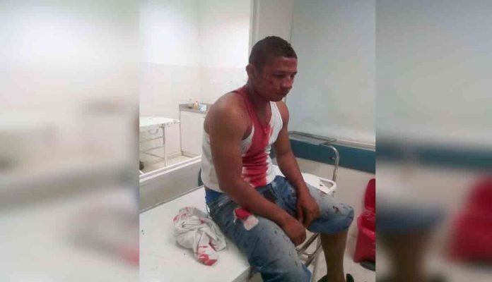 La víctima, quien recibió 10 puntos de sutura en la cabeza por un golpe, que según él, recibió por parte de los agentes cuando a la fuerza intentaban inmovilizar la camioneta por prestar el servicio de transporte de pasajeros, el cual no es permitido a estos tipo de vehículos.