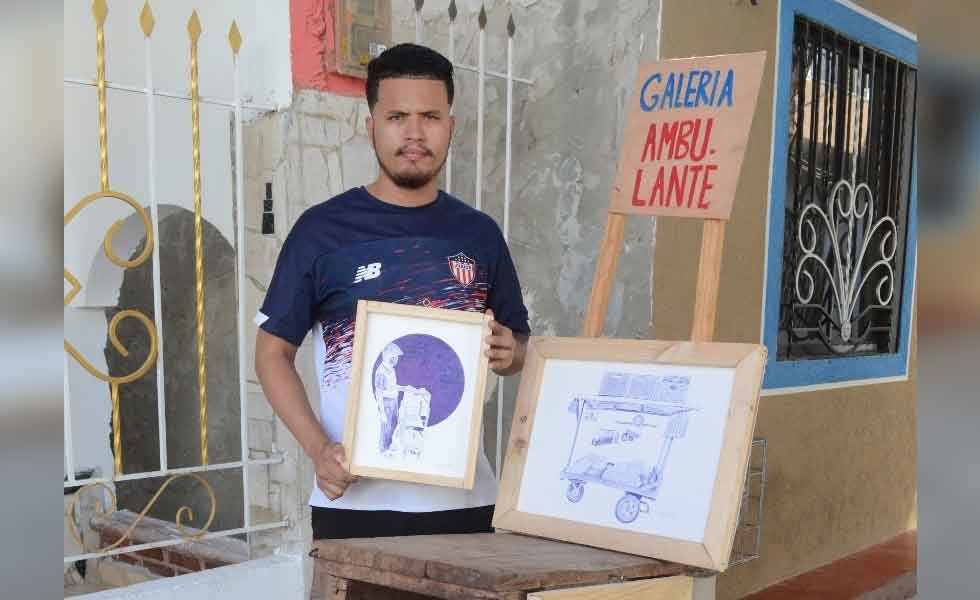 Andrés Arias Toloza es un joven de 26 años y estudiante de artes plásticas de la facultad de Bellas Artes, que pasea las calles de Barranquilla con su ‘Museo Ambulante’, una iniciativa que tiene como fin mostrarle a los transeúntes la realidad diaria de la economía informal de nuestra ciudad a través de cuadros realizados por él mismo.
