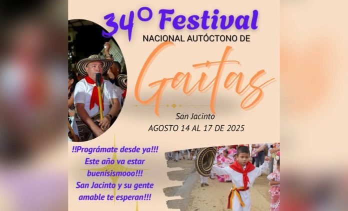 San Jacinto, en el departamento de Bolívar, ya empieza a vivir la emoción del regreso de la chuana y del inconfundible sonido de la gaita, en lo que será la 34ª edición del Festival de Gaitas, que se celebrará del 14 al 17 de agosto de 2025. Este tradicional encuentro cultural ha sido durante décadas un símbolo de identidad, resistencia y herencia musical para los pueblos de los Montes de María y del Caribe colombiano. En esta oportunidad, el evento rendirá un homenaje especial al maestro Rodrigo Díaz Montes, conocido en el ámbito artístico como Colilo Lara, uno de los grandes exponentes y guardianes de la tradición gaitera del país.