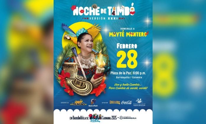 La ‘Noche de Tambó’ 2025 rendirá homenaje a la destacada gaitera cartagenera Mayte Montero, conocida como ‘La Reina de la Gaita’. El evento se llevará a cabo el viernes 28 de febrero en la Plaza de la Paz de Barranquilla, iniciando desde las 6:00 a.m. con una serie de actividades culturales y folclóricas.