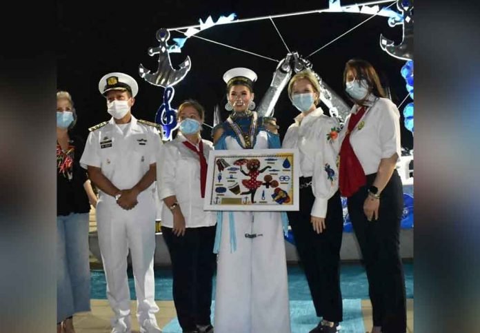 En el mirador hacia el río grande de la Magdalena, en el monumento de la Plaza de los Marinos en el Malecón del Río, la Escuela Naval de Suboficiales ARC Barranquilla de la Armada de Colombia, proclamó a la reina del Carnaval de Barranquilla 2022, Valeria Charris Salcedo, como la ‘Soberana de los Marinos’. La Reina del Carnaval, recibió en manos del Director del Alma Mater, Contralmirante Rafael Arturo Aranguren Devia, el gorro, cuadro y la rabiza marinera, símbolos de la Institución Naval.